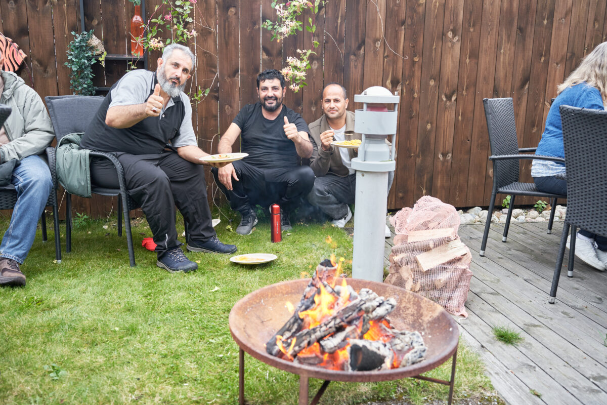 Langbordet i bakgården ble et symbol denne dagen. Her satt folk fra ulike land side om side, spiste, snakket og delte opplevelser. Midt ute i bakgården brant bålet og ga både varme og en ekstra ramme av fellesskap. Rundt flammene ble det utvekslet historier og smil.